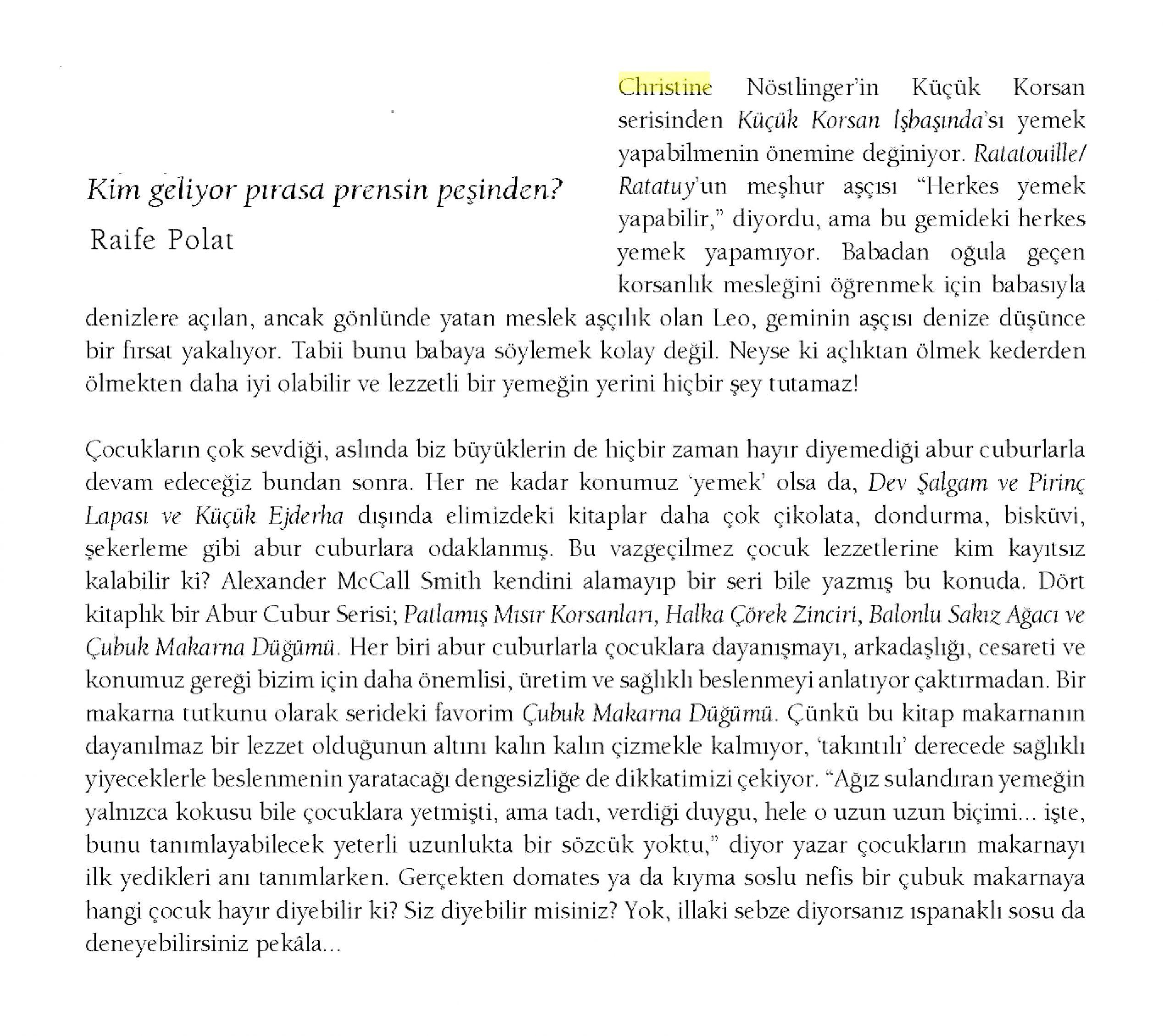 Basından Haberler Kim geliyor pırasa pirensin peşinden? Raife Polat, Yemek ve Kültür Dergisi – 1 Nisan 2014 Paylaş Tweet et