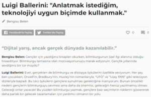 Basından Haberler Luigi Ballerini: "Anlatmak istediğim, teknolojiyi uygun biçimde kullanmak." Bengisu Belen, Oggito, 3 Eylül 2022 Paylaş Tweet et