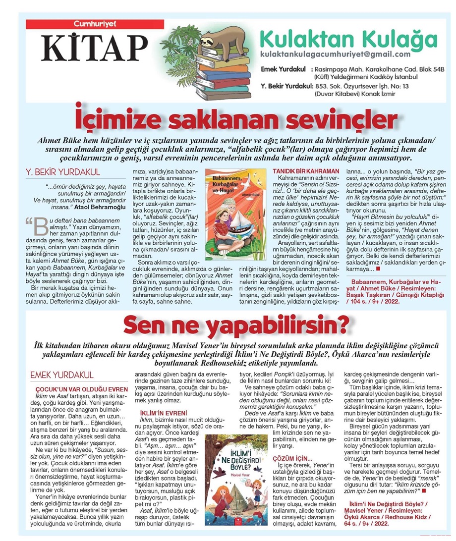 Basından Haberler İçimize Saklanan Sevinçler Y. Bekir Yurdakul, Cumhuriyet Kitap, 13 Ekim 2022 Paylaş Tweet et