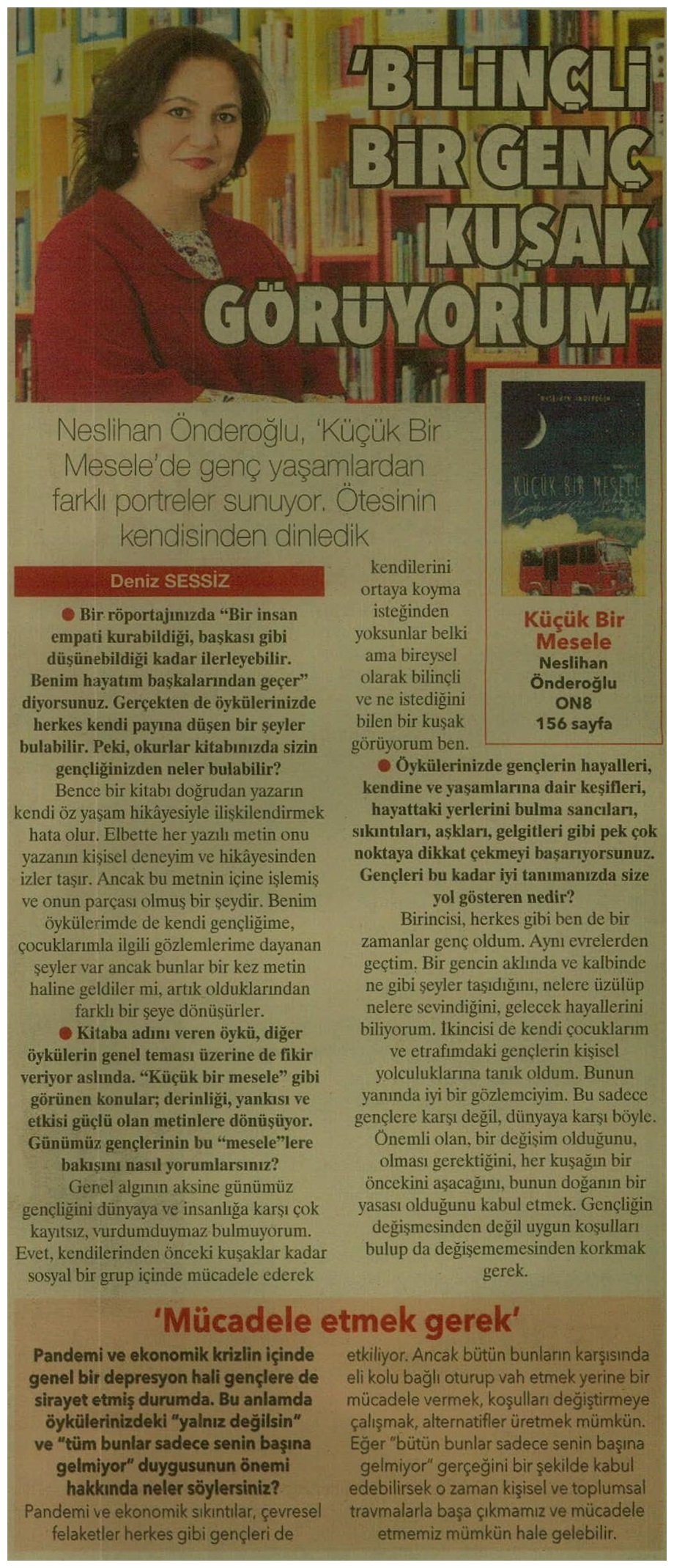 Basından Haberler "Bilinçli Bir Genç Kuşak Görüyorum" Deniz Sessiz, Posta Kitap, 14 Ocak 2022 Paylaş Tweet et