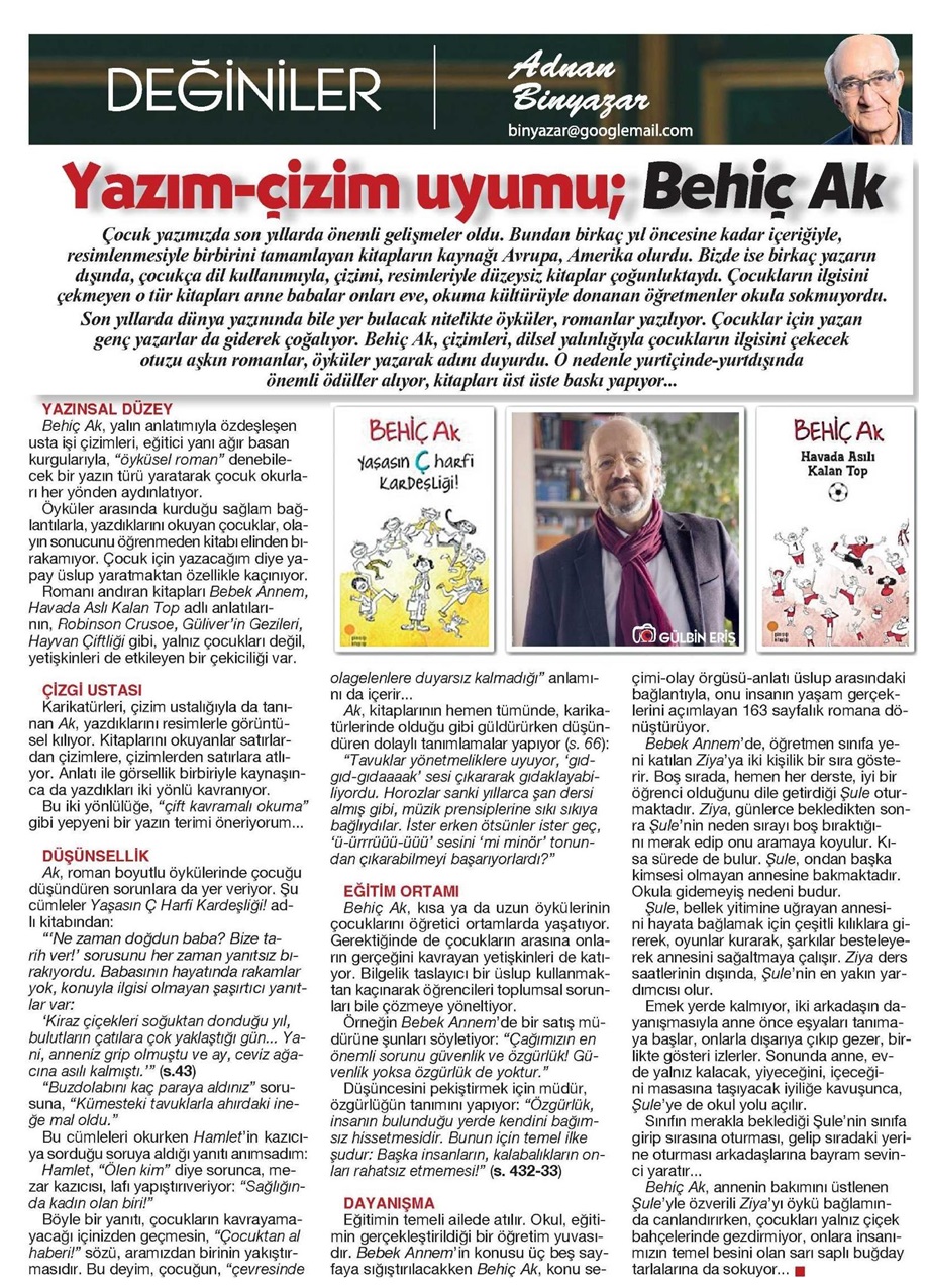 Basından Haberler Yazım-Çizim Uyumu; Behiç Ak Adnan Binyazar, Cumhuriyet Kitap, 26 Mayıs 2022 Paylaş Tweet et