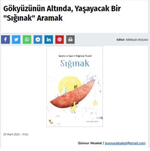 Basından Haberler Gökyüzünün Altında, Yaşayacak Bir "Sığınak" Aramak Günnur Aksakal, Edebiyat Atölyesi, 29 Mart 2023 Haberi okumak için görsele tıklayınız. Paylaş Tweet et