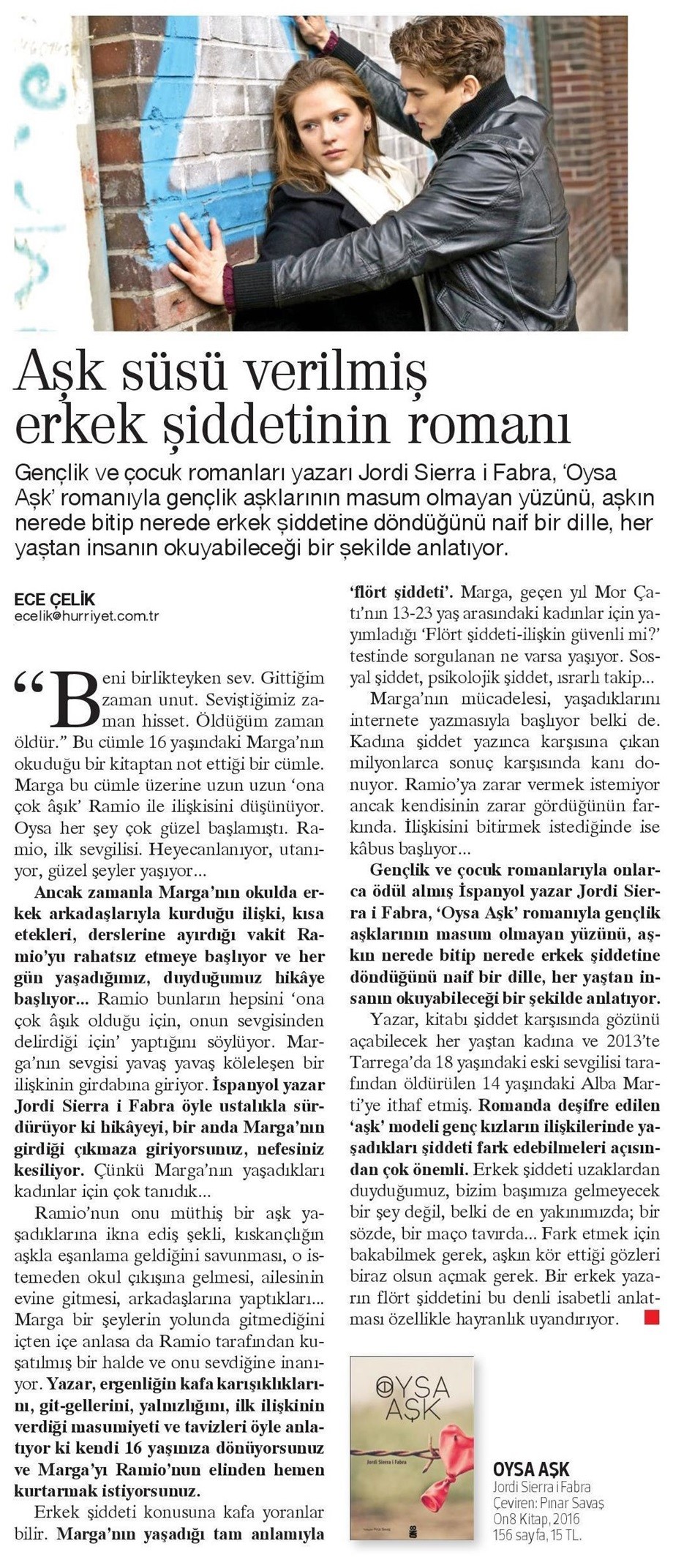 Basından Haberler Aşk süsü verilmiş erkek şiddetinin romanı Ece Çelik, Hürriyet Kitap Sanat – 10 Mart 2017 Paylaş Tweet et