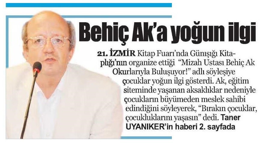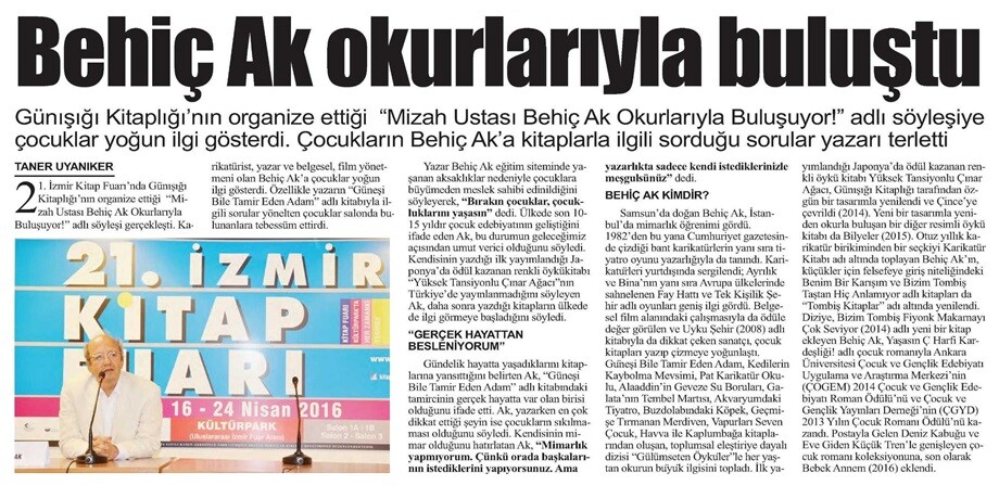 Basından Haberler Behiç Ak okurlarıyla buluştu Taner Uyanıker, İlkSes – 24 Nisan 2016 Paylaş Tweet et