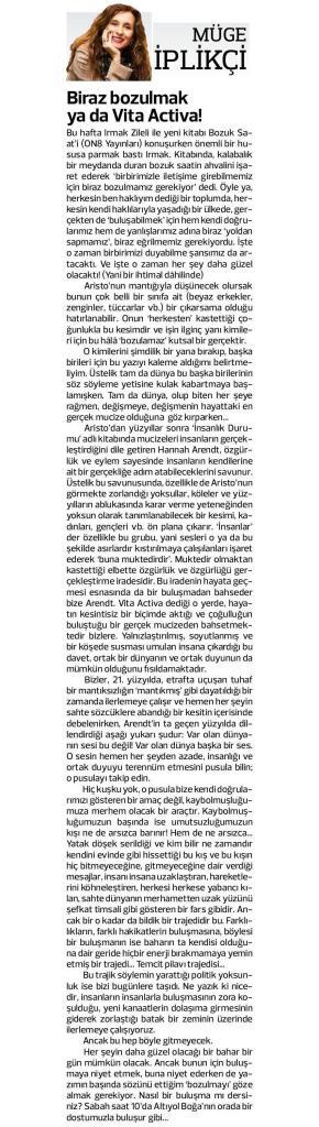 Basından Haberler Biraz bozulmak ya da Vita Activa! Müge İplikçi, Gazete Kadıköy – 17 Mayıs 2019 Paylaş Tweet et
