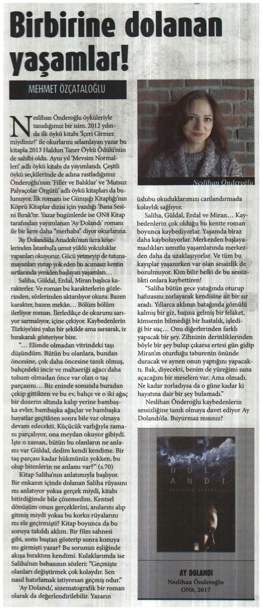 Basından Haberler Birbirine dolanan yaşamlar Mehmet Özçataloğlu, BirGün Kitap – 22 Nisan 2017 Paylaş Tweet et