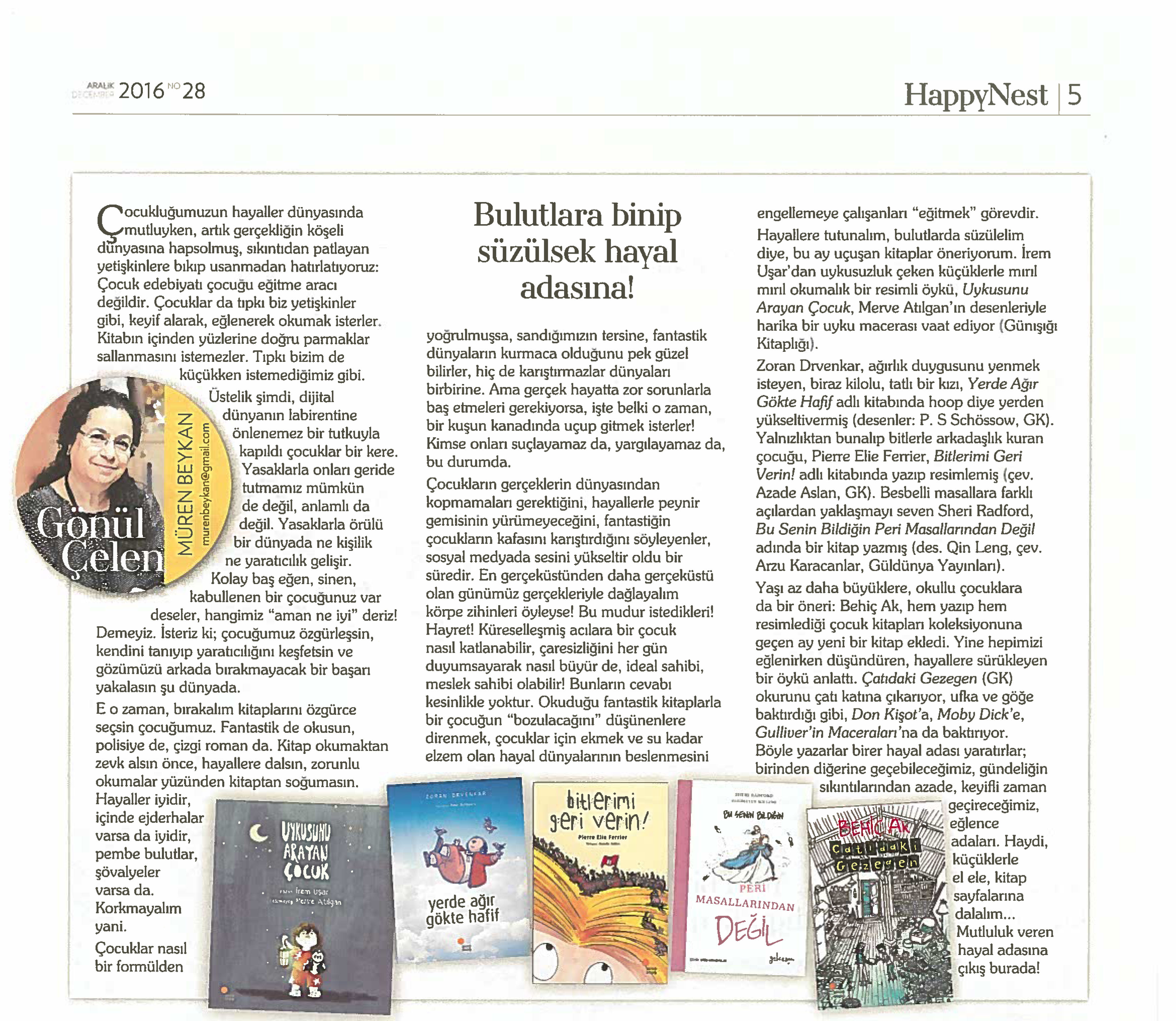 Basından Haberler Bulutlara binip süzülsek hayal adasına! Müren Beykan, HappyNest Bülten – 1 Aralık 2016 Paylaş Tweet et