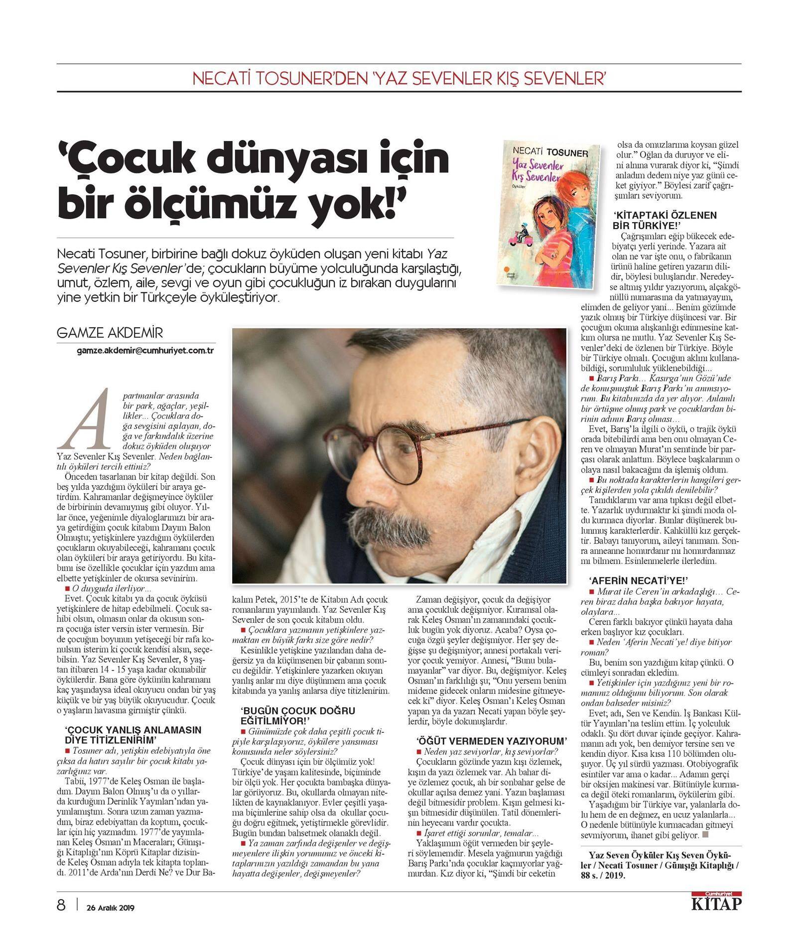Basından Haberler Çocuk dünyası için bir ölçümüz yok! Gamze Akdemir, Cumhuriyet Kitap – 26 Aralık 2019 Paylaş Tweet et