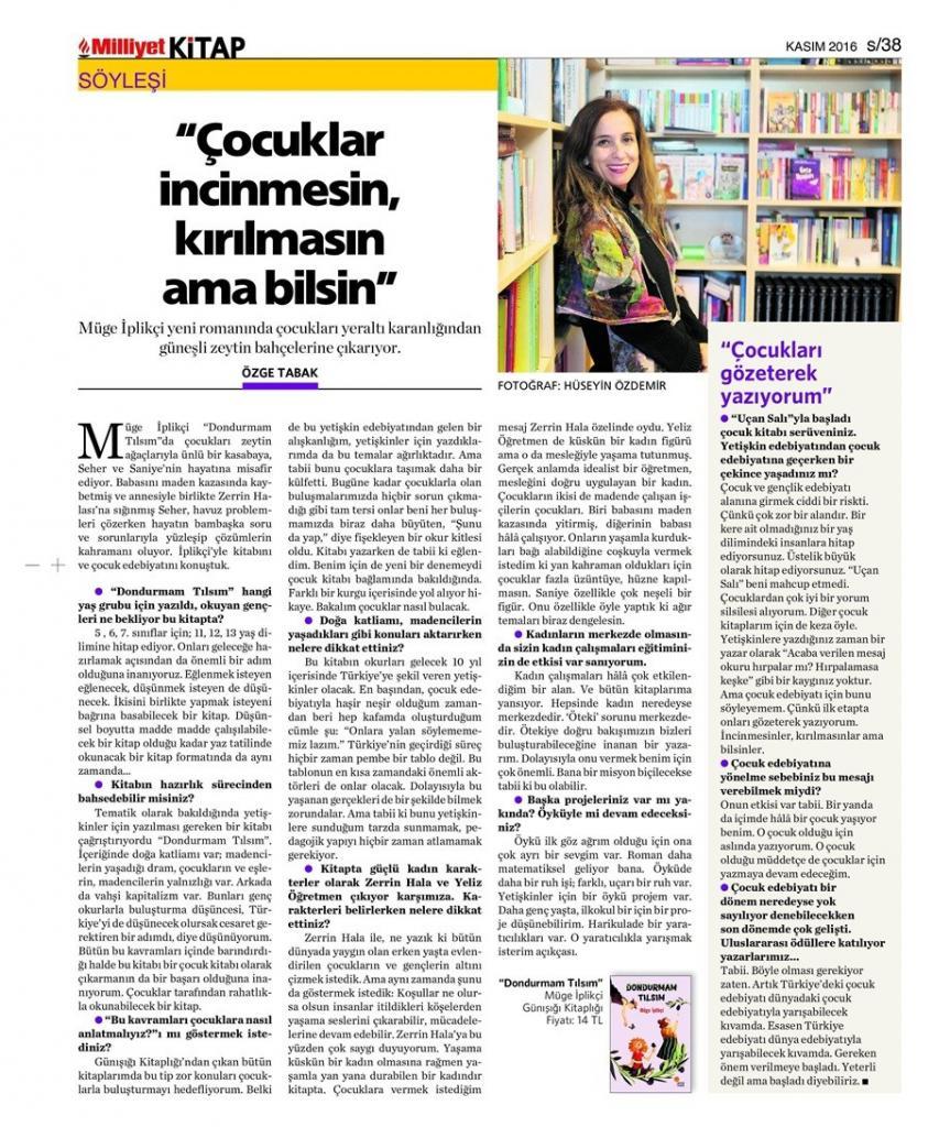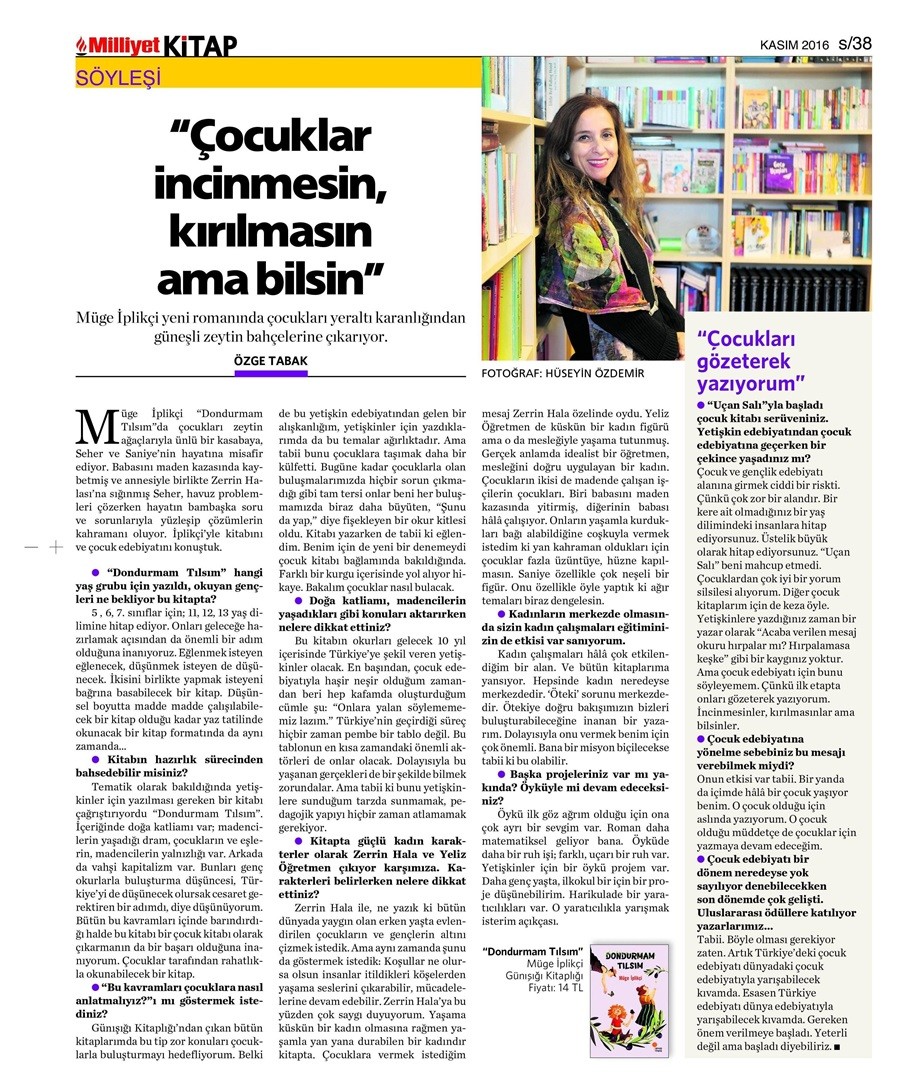 Basından Haberler Çocuklar incinmesin, kırılmasın ama bilsin Özge Tabak, Milliyet Kitap – 12 Kasım 2016 Paylaş Tweet et