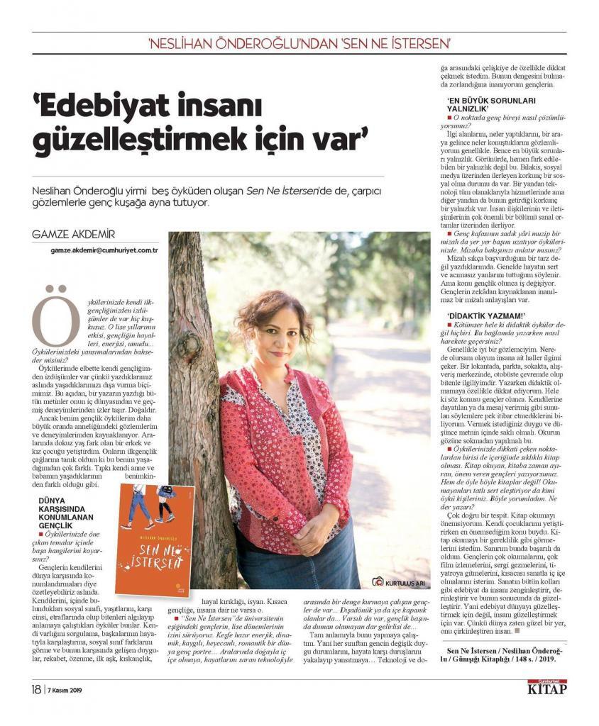 Basından Haberler Edebiyat insanı güzelleştirmek için var Gamze Akdemir, Cumhuriyet Kitap – 7 Kasım 2019 Paylaş Tweet et