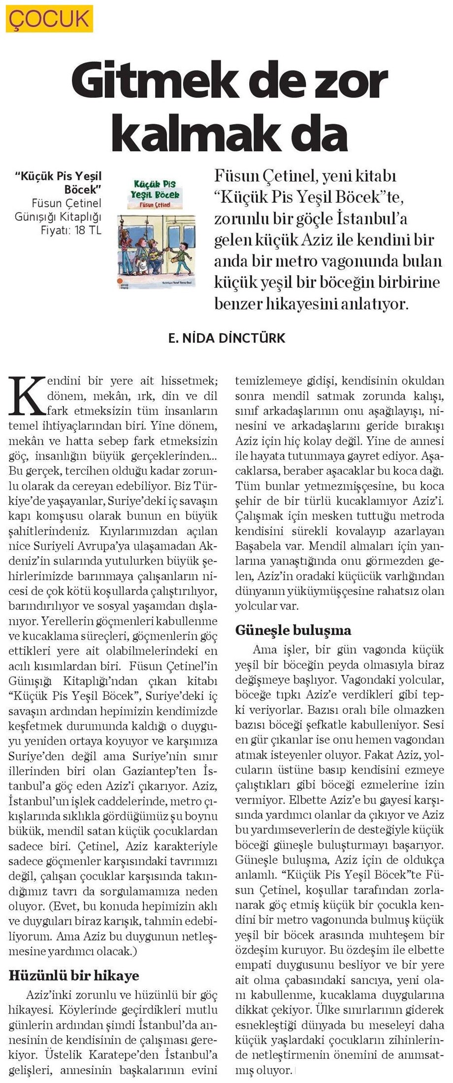 Basından Haberler Gitmek de zor kalmak da E. Nida Dinçtürk – Milliyet Kitap – 20 Haziran 2019 Paylaş Tweet et