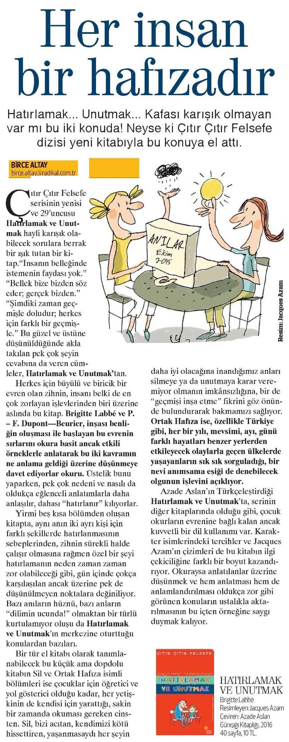 26-02-2016 | Radikal Kitap | Her insan bir hafızadır