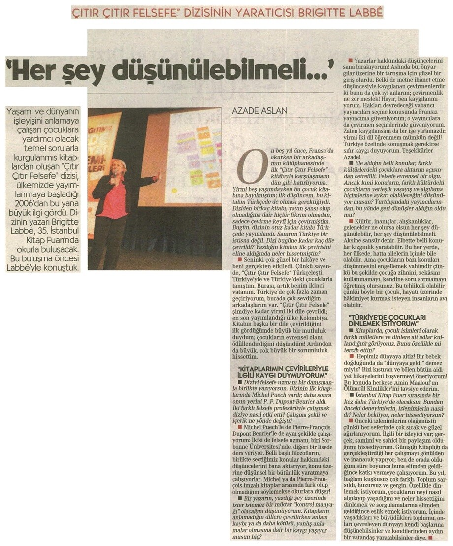 Basından Haberler Her şey düşünülebilmeli Azade Aslan, Cumhuriyet Kitap – 10 Kasım 2016 Paylaş Tweet et