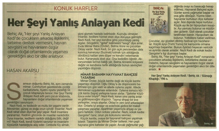 Basından Haberler Her Şeyi Yanlış Anlayan Kedi Hasan Akarsu, Cumhuriyet Kitap – 22 Kasım 2018 Paylaş Tweet et