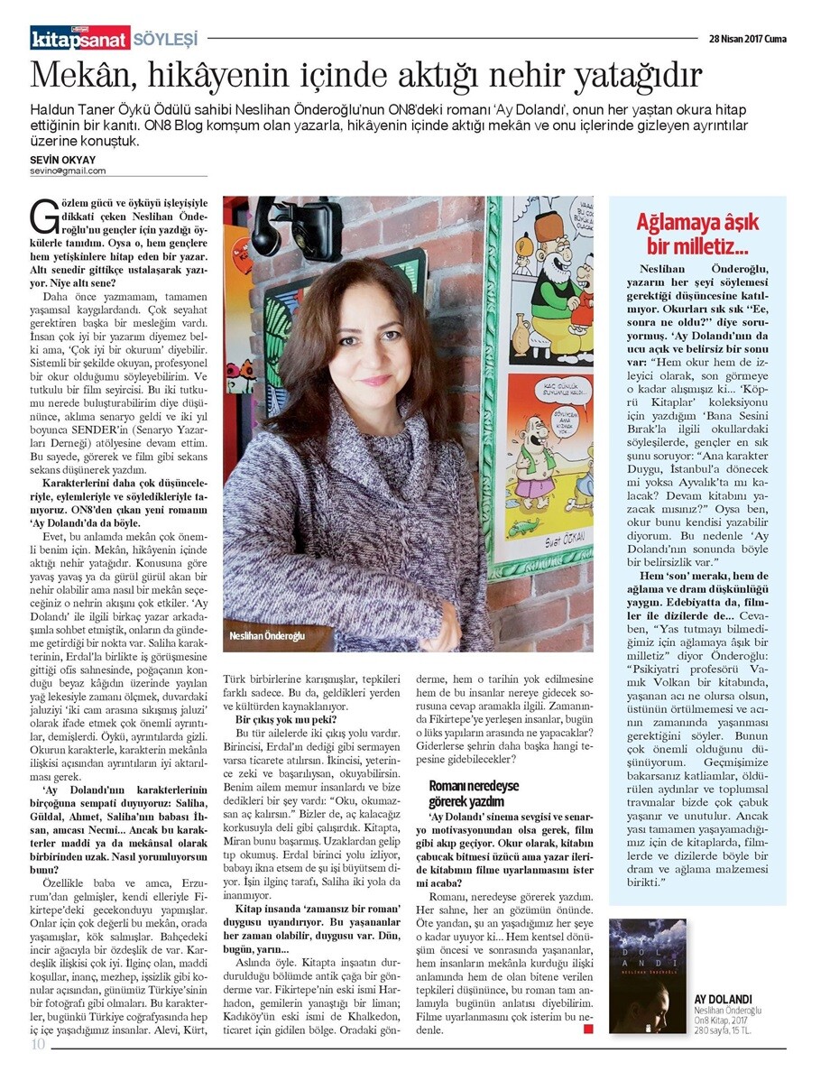 Basından Haberler Mekân, hikâyenin içinde aktığı nehir yatağıdır Sevin Okyay, Hürriyet Kitap Sanat – 28 Nisan 2017 Paylaş Tweet et