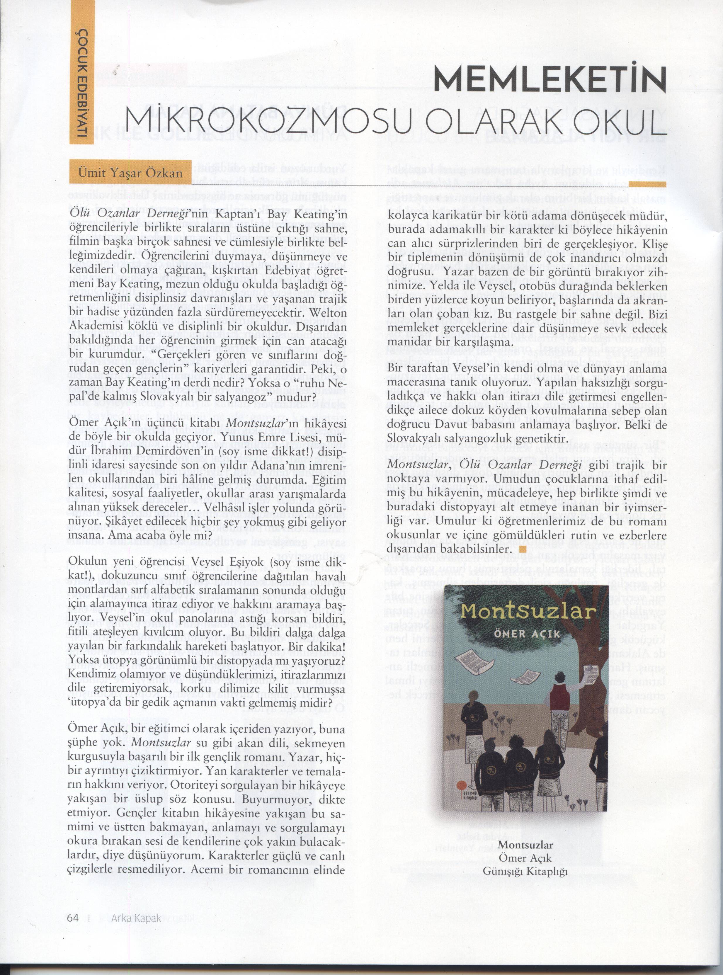 Basından Haberler Memleketin mikrokozmozu olarak okul Ümit Yaşar Özkan, Arka Kapak – 1 Mayıs 2017 Paylaş Tweet et