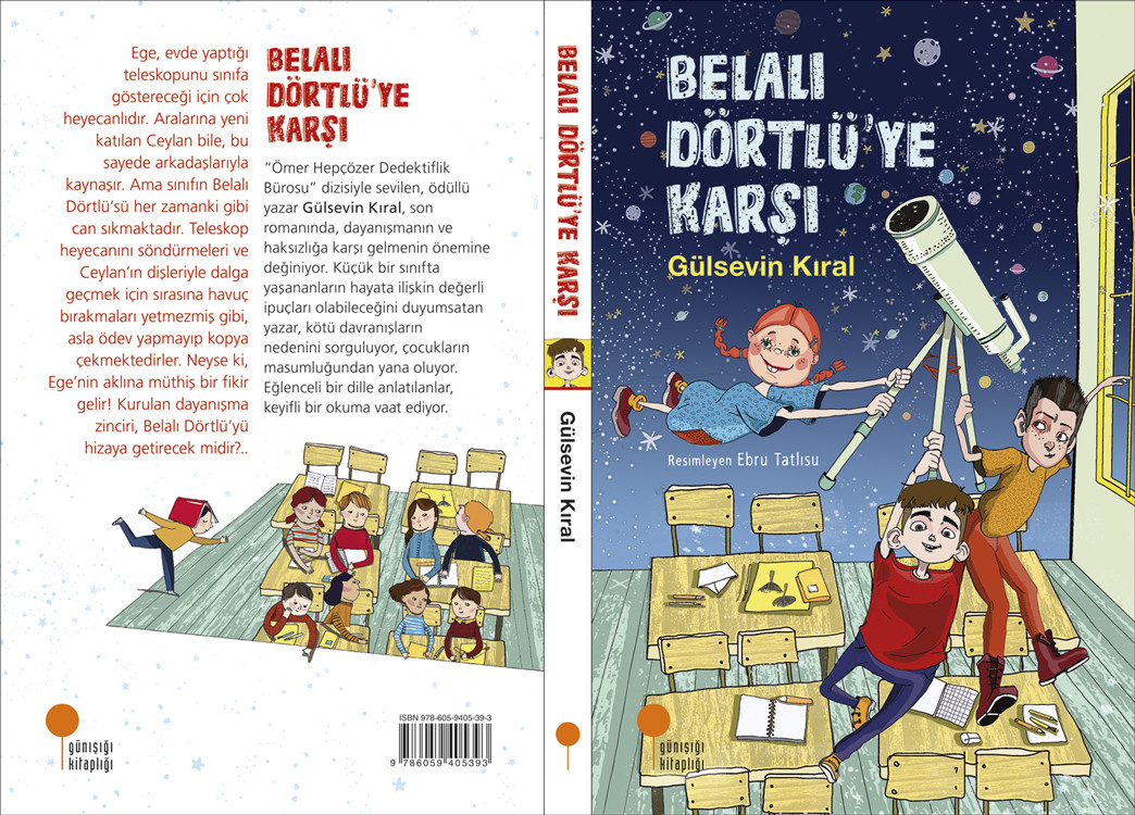 “Ömer Hepçözer Dedektiflik Bürosu” dizisiyle çok sevilen ödüllü yazar Gülsevin Kıral, son romanında bir okul hikâyesi anlatıyor. Küçük bir sınıfta yaşananların hayata ilişkin değerli ipuçları taşıdığını hatırlatan yazar, kötü davranışların nedenlerini sorguluyor, çocukların masumluğundan yana taraf oluyor. “Formül Hasan”, “Edison Ege”, “Belalı Dörtlü” gibi ilgi çekici karakterler ve eğlenceli diyaloglar eşliğinde, akran zorbalığı konusunu tartışmaya açan roman, dayanışmanın ve haksızlıklara karşı çıkmanın önemine değiniyor. Resimleriyle de dikkati çeken kitap, iletişimden gökbilime pek çok temayı içinde barındırıyor.