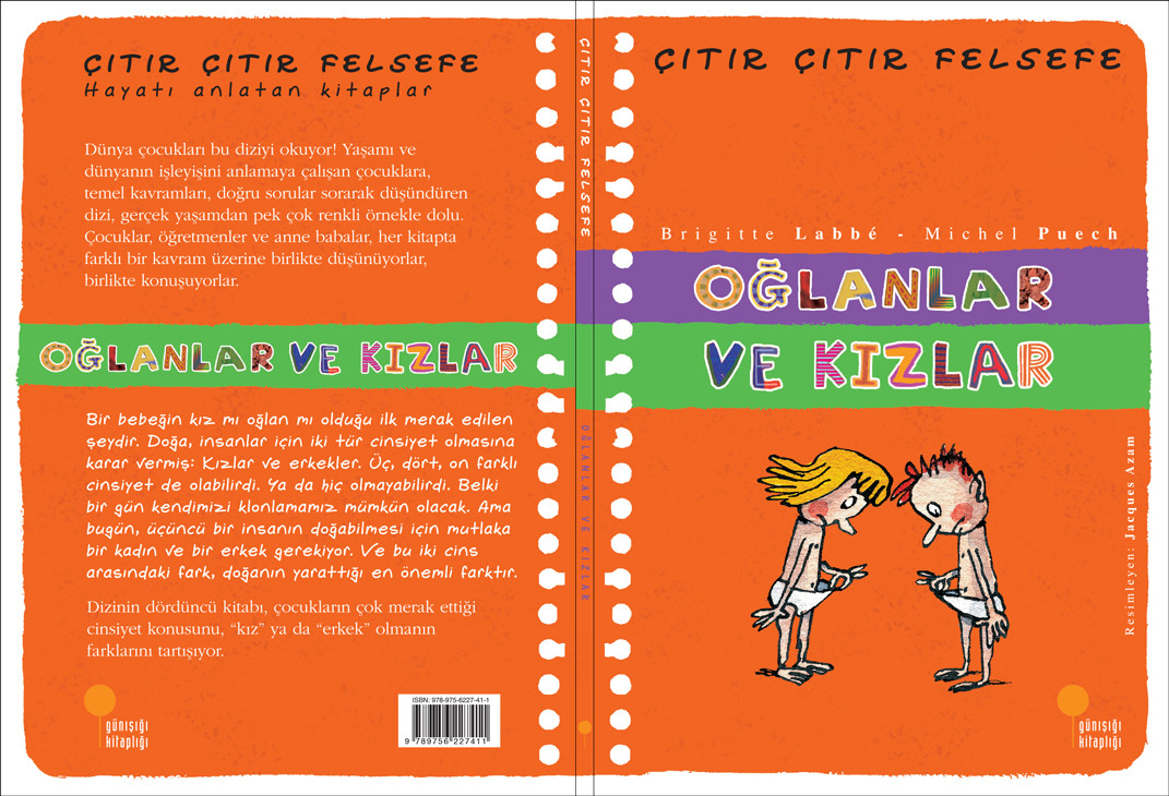 Çevrildiği tüm ülkelerde, her yaştan okuru felsefeyle buluşturan “Çıtır Çıtır Felsefe” dizisinin dördüncü kitabı cinsiyetleri ve ayrımcılık kavramlarını tartışıyor. Brigitte Labbé’nin Paris Sorbone Üniversitesi felsefe profesörlerinden Michel Puech danışmanlığında kaleme aldığı dizi, yaşamı ve dünyanın işleyişini anlamaya çalışan çocuklara yardımcı olacak temel sorularla kurgulanıyor. Her birinde farklı bir konunun ele alındığı, günlük yaşamda sıkça karşılaştığımız örnek olayların öyküleştirildiği kitaplar, Jacques Azam’ın karikatür tadındaki renkli resimleriyle ve özgün tasarımıyla benzersiz. Ülkemizde yayımlanmaya başladığı 2006 yılından bu yana büyük ilgi gören dizi, hem çocuklar, hem de öğretmenler ve anne babalar tarafından sevilerek okunuyor.