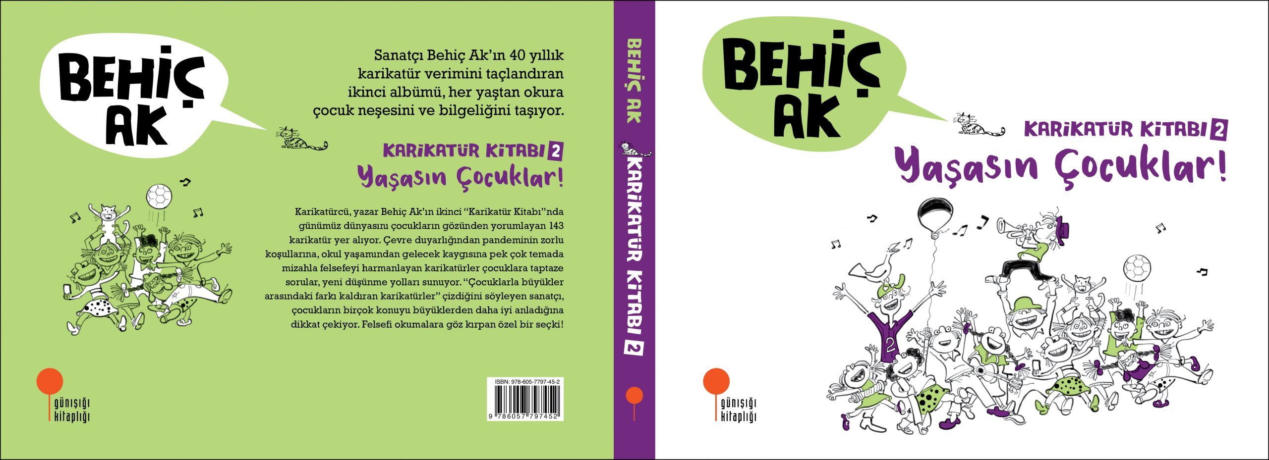 Karikatürist, yazar Behiç Ak, 40 yıllık benzersiz karikatür emeğini yeni bir albümle taçlandırıyor. Her yaştan okura çocuk neşesini ve bilgeliğini taşıyan ikinci “Karikatür Kitabı”nda, günümüz dünyasını çocukların gözünden yorumlayan 143 karikatür yer alıyor. Çevre duyarlığından pandeminin zorlu koşullarına, okul yaşamından gelecek kaygısına pek çok temada mizahla felsefeyi harmanlayan karikatürler çocuklara taptaze sorular, yeni düşünme yolları sunuyor. “Çocuklarla büyükler arasındaki farkı kaldıran karikatürler” çizdiğini söyleyen sanatçı, çocukların birçok konuyu büyüklerden daha iyi anladığına dikkat çekiyor. Türkiye’nin 2022 Hans Christian Andersen Ödülü “yazar” adayı olan Behiç Ak’tan felsefi okumalara göz kırpan özel bir seçki!