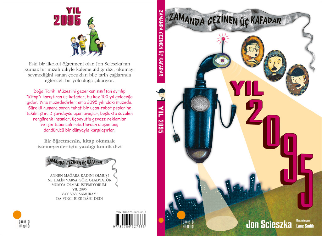 “Zamanda Gezinen Üç Kafadar” dizisinde bu kez maceranın yönü değişiyor. Gerçek tarihsel dönemlere, uygarlıklara, olay ve kişilere dayanan dizinin yaratıcısı Jon Scieszka, bu kitabında minik okuyucularını geleceğe götürüyor. Müren Beykan’ın özenli editörlüğü ile Türkçe’ye kazandırılan altı kitaplık diziyi, etkileyici resimleri ve keyifli anlatımı nedeniyle okumayı sevmediğini sanan çocuklar bile ellerinden bırakmıyor. Hayal gücünün eğlenceli kurguyla harmanlandığı kitap, etkileyici resimlerle destekleniyor. Özellikle erkek çocukların kitap okumaktan çekinmesine ilişkin sıradışı görüşleri ve yaklaşımlarıyla tanınan yazar, 2008-2010 yıllarında ABD’nin Ulusal Okuma Elçisi seçildi. Tüm dünyada büyük ilgi gören dizi, www.timewarptrio.com üzerinden de takip edilebiliyor.